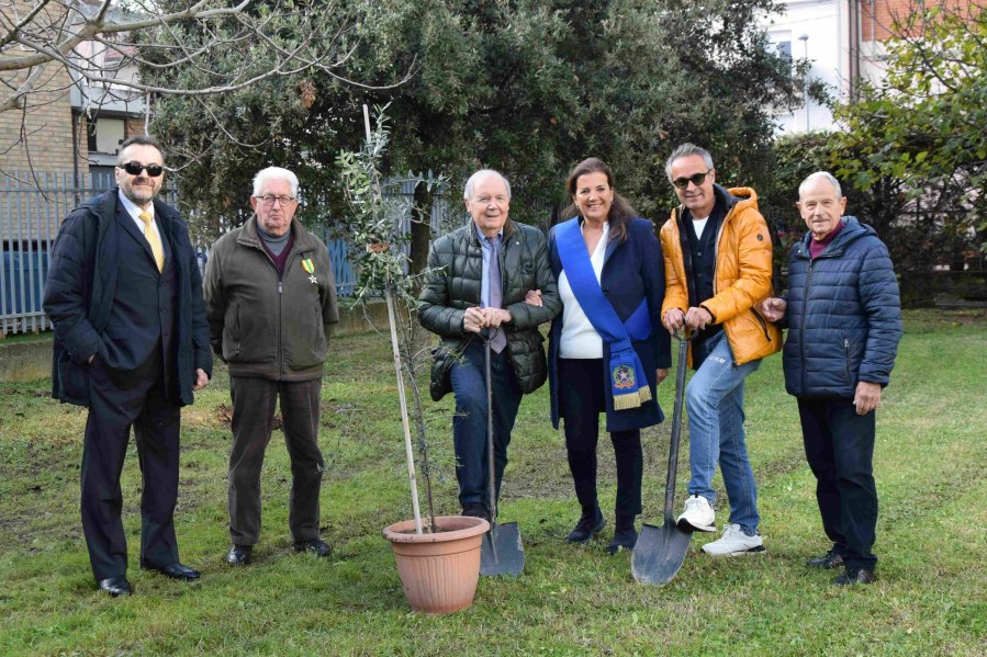 Nella foto: alla piantumazione dell’ulivo sono presenti, da sinistra, i Maestri del Lavoro Carlo Alberto Pari, Ricardo Renzini, Flavio Paci, la Vicepresidente della Provincia Daniela de Leonardis con il Capo di Gabinetto Daniele Morelli, il Maestro del Lavoro Mario Cigni. Fotografia del Maestro del Lavoro Daniele Caldari.